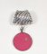 Bijou de foulard en métal couleur argent vieilli, pendentif métal et cuir de vachette grainé, tannage minéral, coloris rose fushia.
